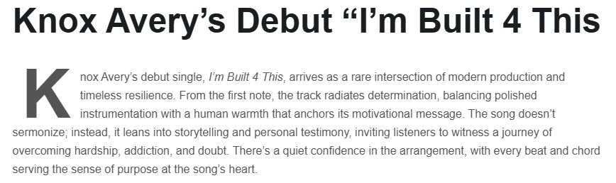 Knox Avery’s first radio play Review the locations here(80+ radio all over the globe):
