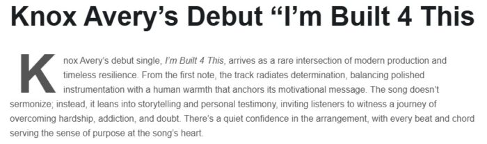 Knox Avery’s Debut “I’m Built 4 This